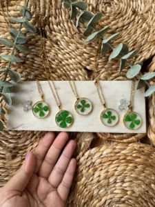 - Necklaces: A clover charm necklace pairs beautifully with a shorter gemstone choker or a longer pendant for an elegant layered effect.